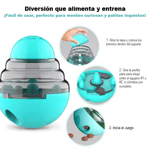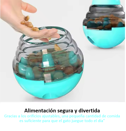 - «Alimentación lenta y control de porciones», ranuras ajustables para golosinas que te permiten controlar la dispensación de aperitivos, ralentizar a los comedores rápidos y apoyar una digestión saludable. Ideal para croquetas, golosinas secas o hierba gatera.