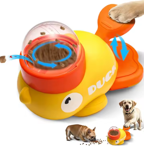 Haz que la alimentación de tu perro sea más divertida, saludable y estimulante con este original juguete interactivo en forma de pato. Diseñado como un comedero lento, este dispensador tipo prensa permite que tu mascota obtenga pequeñas porciones de comida cada vez que presiona el botón, ayudando a reducir la ansiedad y evitar que coma demasiado rápido.
